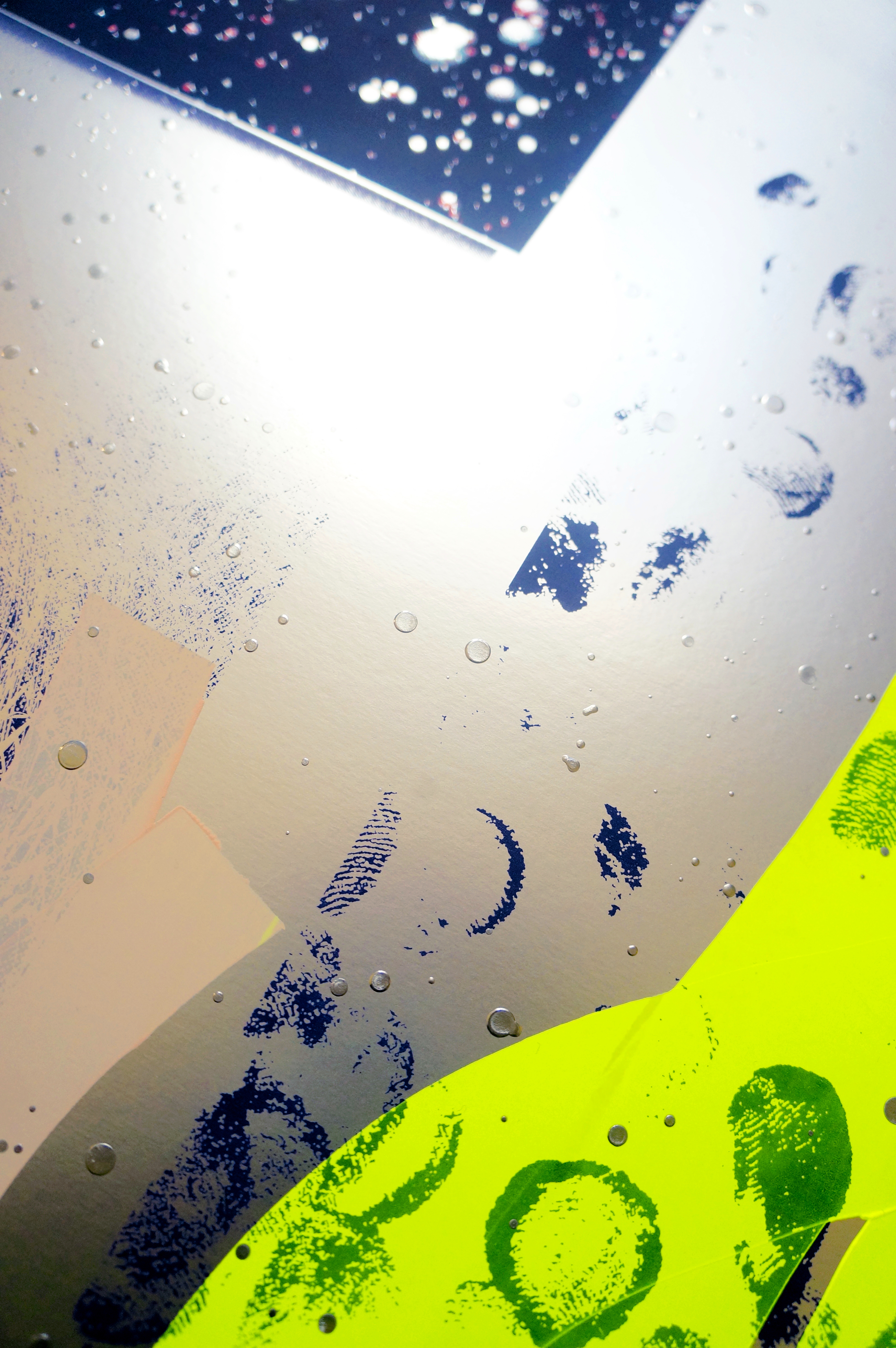 JUICY TEARS Éditions de sérigraphies fluo sur papier argenté, 50x70cm, 2023.